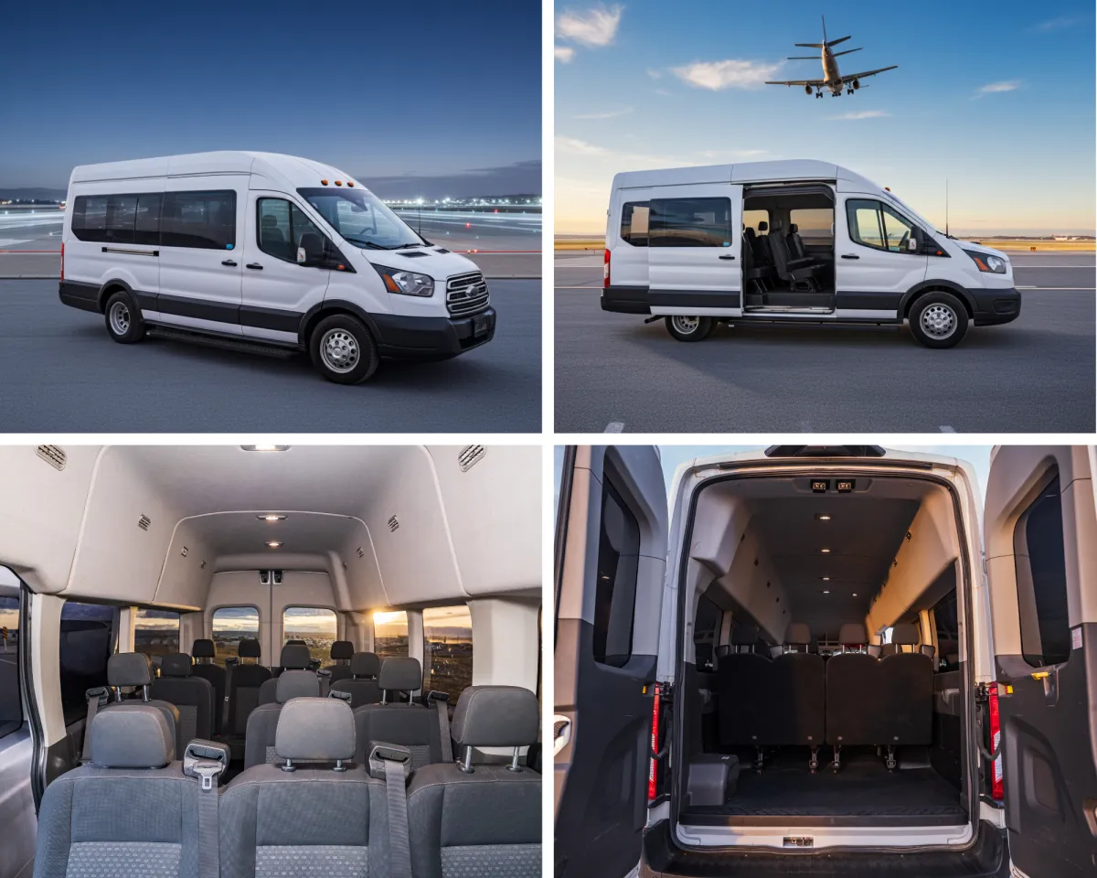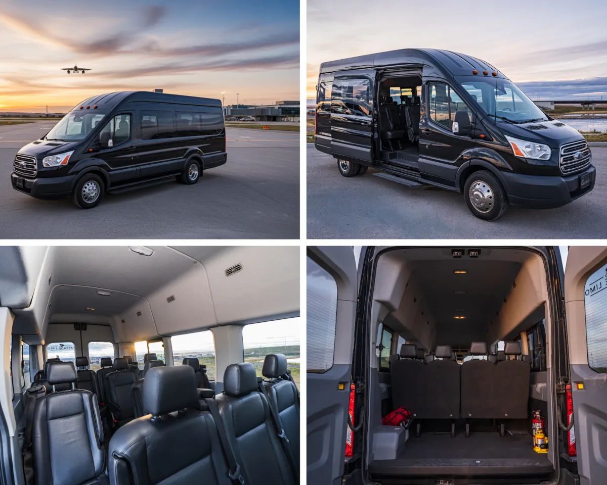 -Passenger van: 1-14 passengers; the less number of passengers the more luggage space is available. Ideal for airport transfers, in-city transfers and out of town trips. Suitable for families, groups travelling together or passengers with lots of luggage. Similar price to a Lincoln stretch limo but offers more luggage and passenger capacity.